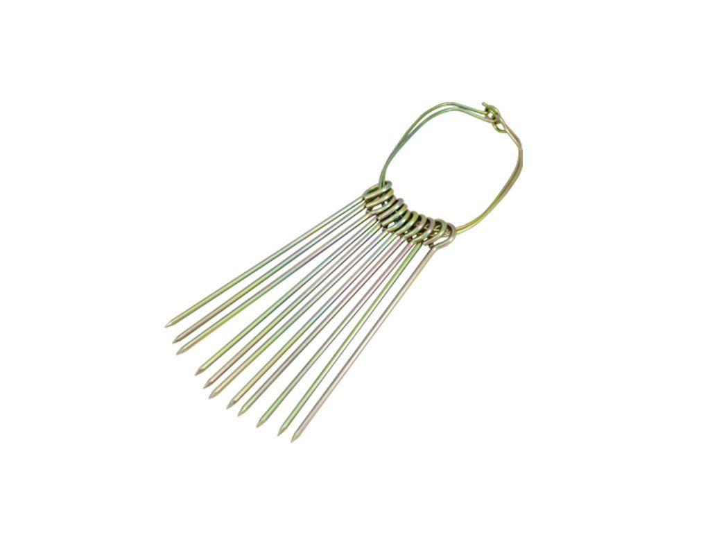Nepostradatelné pro označení místa, kde začíná další položení pásky, používané při měření na dlouhé vzdálenosti. Sada obsahuje 11 kolíků z pozinkované oceli o délce 300 mm.
