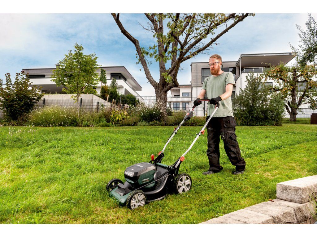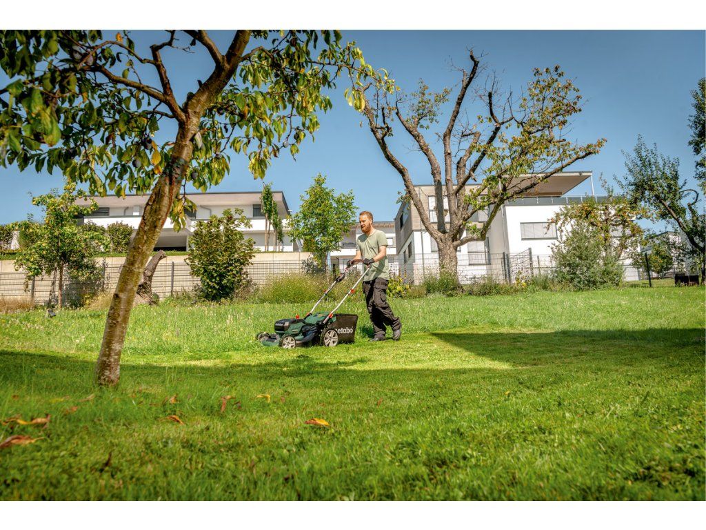 Aku sekačka na trávu RM 36-18 LTX BL46 METABO- Tichá akumulátorová sekačka na trávu pro efektivní sekání, sbírání a mulčování ploch do 800 m²