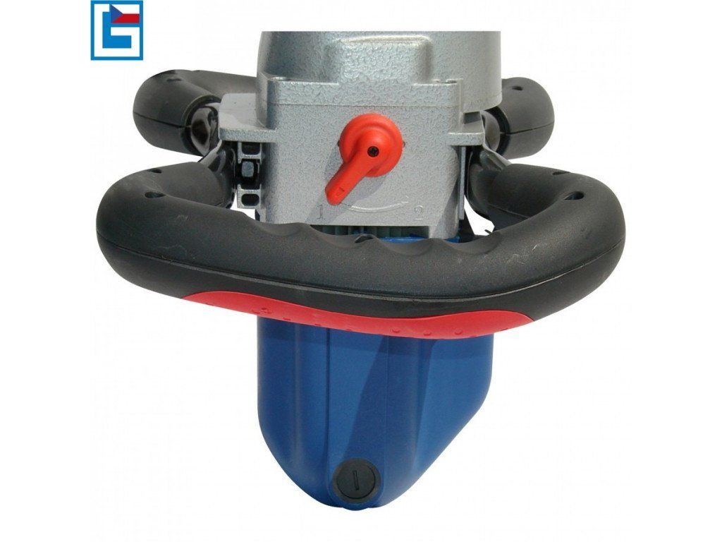 Konstrukce: obouruční rámová rukojeť s měkkou tlumicí vložkou, 2 spirálové míchací metly (→ pro jemnozrnné/hrubozrnné stavební hmoty; průměr koše: 140 mm).