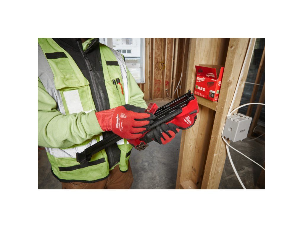 - Kompaktní a lehký design poskytuje uživatelům přístup do těsných příček a vylepšenou ergonomii při nastřelování sponek nad hlavou nebo na obtížně dostupných místech