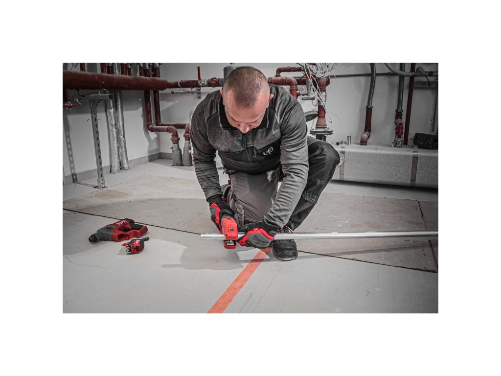 - MILWAUKEE® RAPTOR™ je na světě první 12V řezák na potrubí, který dokáže řezat zabudované potrubí z nerezové oceli, uhlíkové oceli a mědi