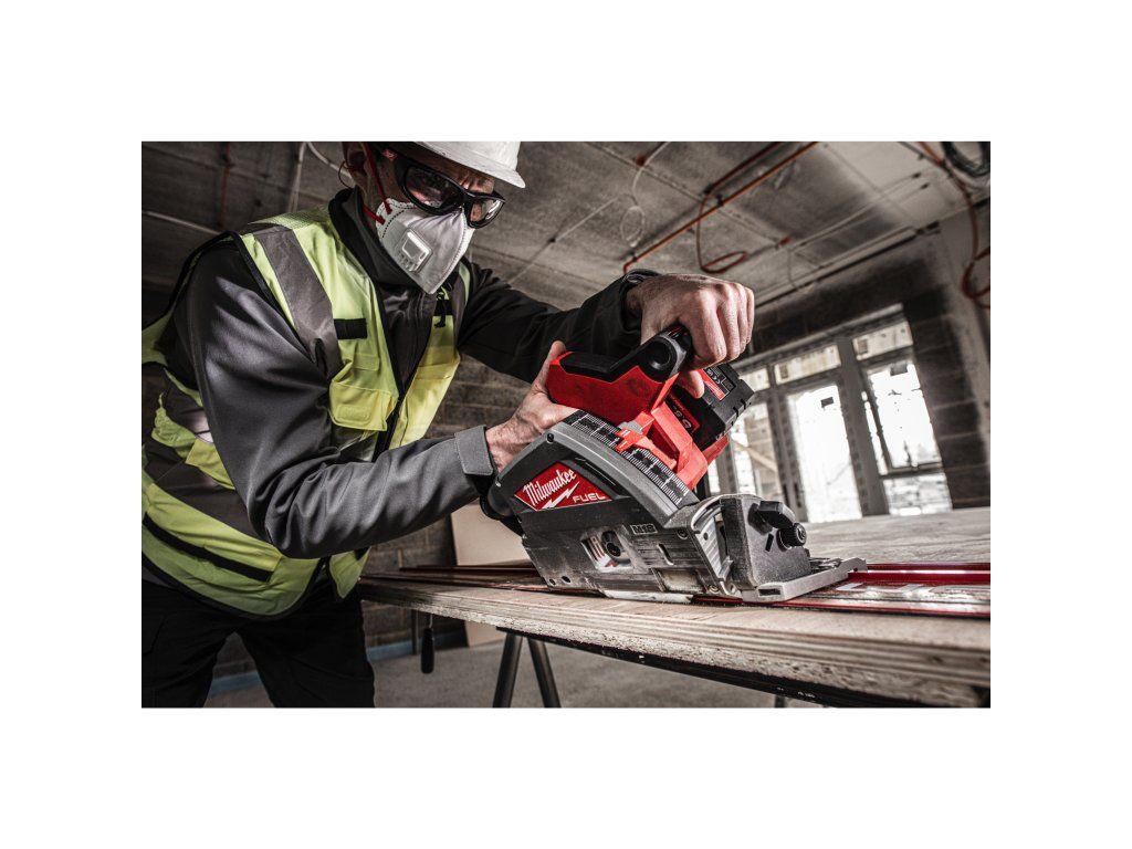 - Ponorná pila M18 FUEL™ poskytuje takový výkon, který umožňuje při řezání dosahovat rychlosti podávání jako u ekvivalentní síťové kotoučové pily, a možnost nařezat až 45 metrů 18 mm překližky na jedno nabití 5,5 Ah akumulátoru