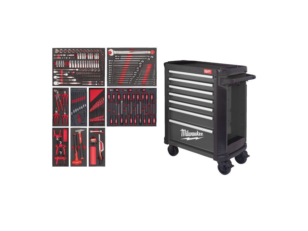 - Obsahuje - 119dílná pěnová sada ráčen a nástrčných klíčů ¼″, ⅜″, ½″ (4932498518), 27dílná pěnová sada metrických očkoplochých klíčů MAXBITE (4932493247), 4dílná pěnová sada kleští (4932493631), 15dílná pěnová sada metrických ráčnových očkoplochých klíčů MAXBITE (4932479828), 10dílná pěnová sada dvojitých otevřených klíčů (4932493629), 23dílná pěnová sada šroubováků Trilobe (4932479830), 3dílná pěnová sada pojistkových kleští (4932493632), 2dílná pěnová sada zámečnického a dead blow kladiva (4932493253), 3dílná pěnová sada řezných nástrojů a měřidel (4932493252), ocelová pojízdná dílenská skříň 30" (4932500742)