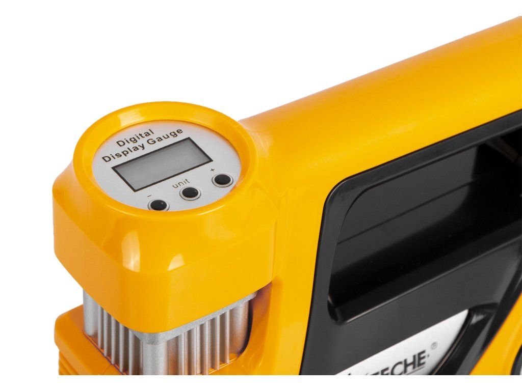 Kompresor je vybaven digitálním displejem horní části a praktickou svítilnou.