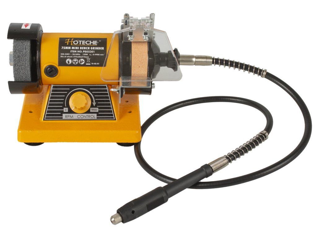 Dvoukotoučová stolní mini bruska od značky Hoteche je ideální kombinovaný nástroj k leštění nebo broušení různých materiálů.