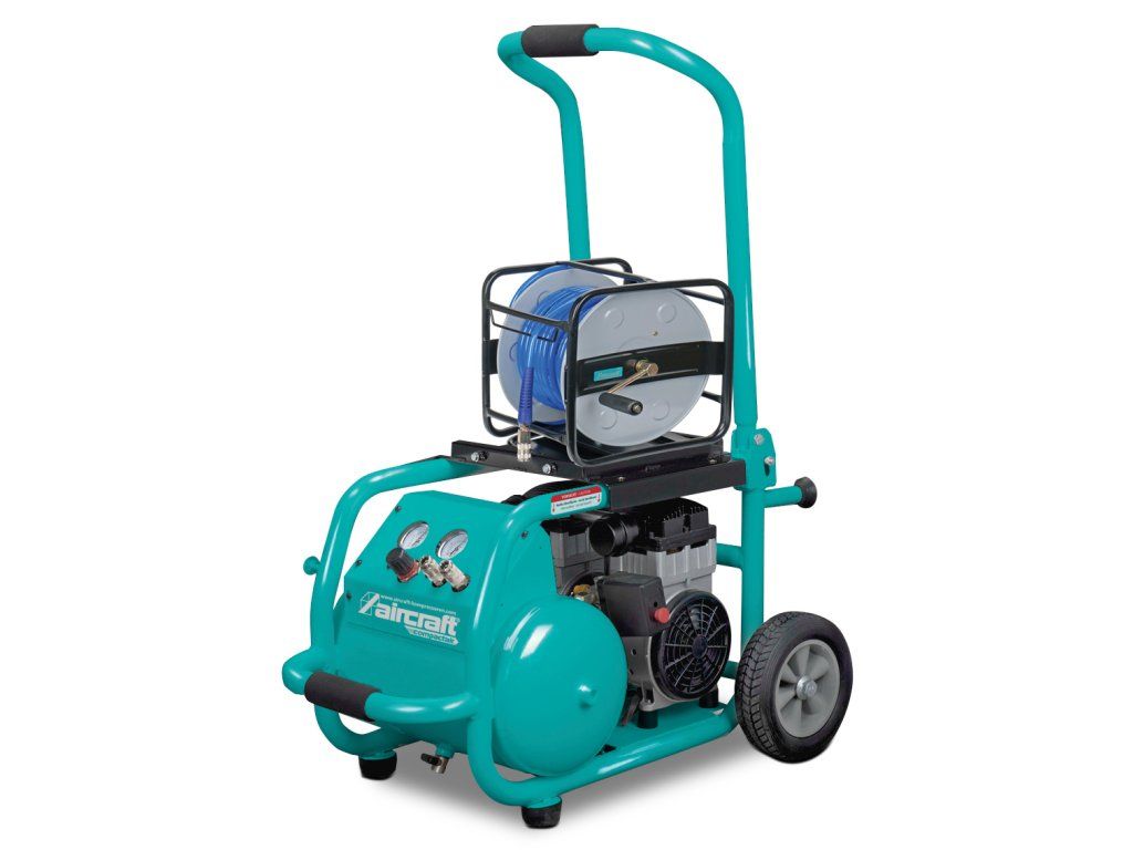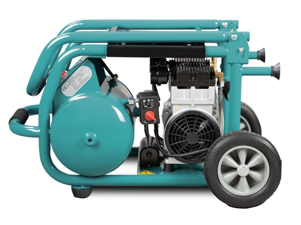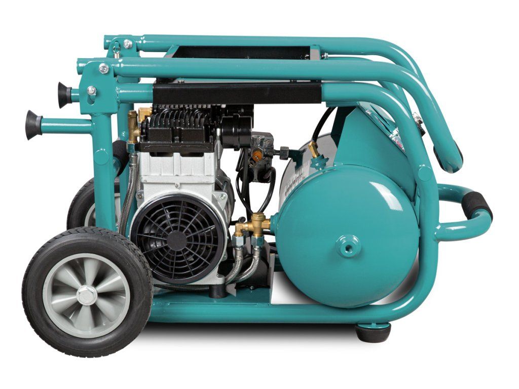 Pojízdný, tichý a bezolejový kompresor pro univerzální použití, např. pro lakýrování, řezání, atd. pomocí pneunářadí.