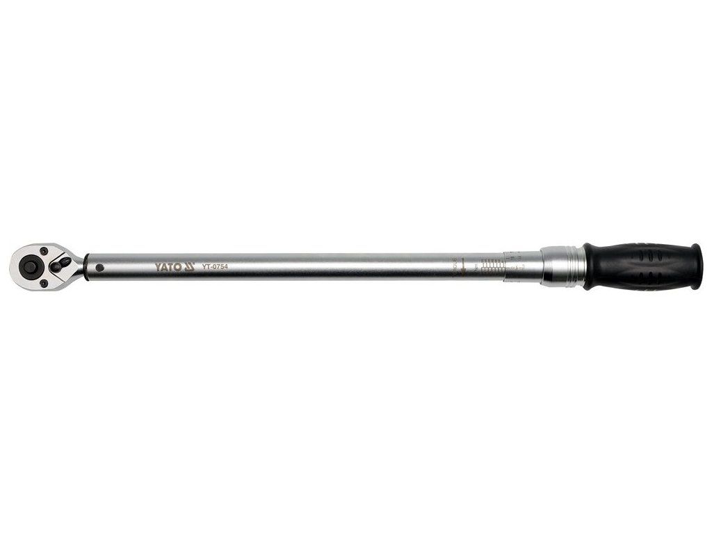 Momentový klíč Yato s rozsahem 60 - 340 Nm, s garantovanou přesností +/- 4%. Nastavení se provádí otáčením rukojeti. nastavená hodnota je zřetelná na dobře čitelné stupinici. Je zafixována ihned po uvolnění aretačního prstence. Klíč má celkově jednoduchou a rychlou obsluhu. Dosažení nastaveného momentu je signalizováno zřetelným cvaknutím v mechanizmu ráčny .