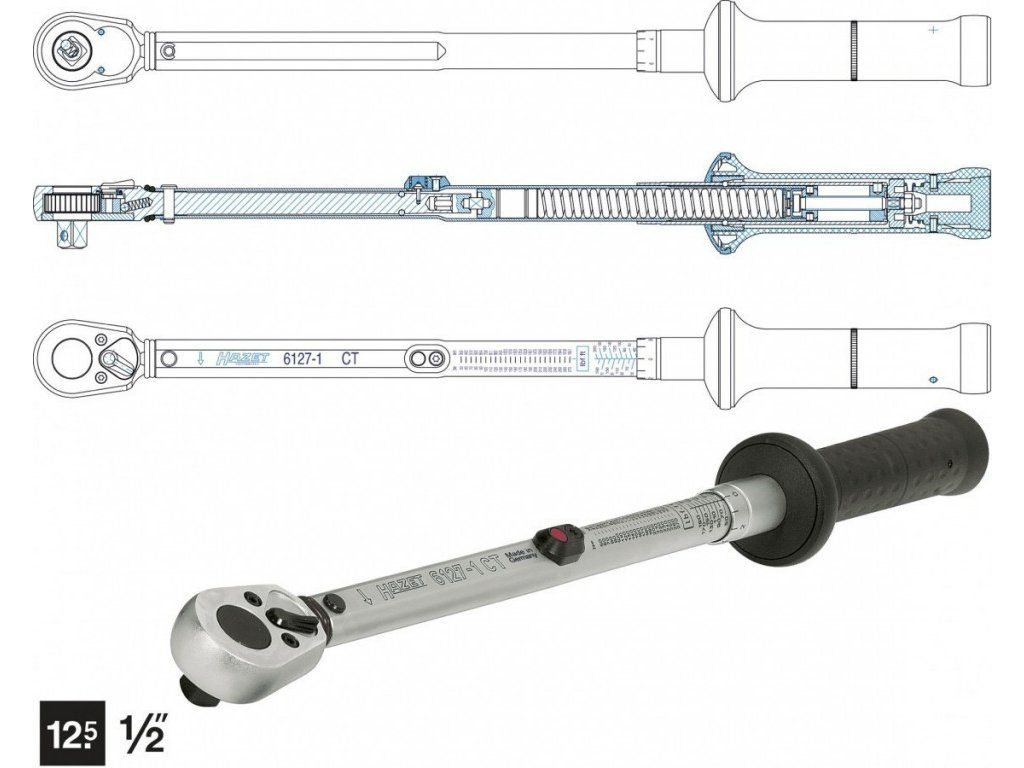 Momentový klíč 1/2" s US stupnicí, Hazet 6128-1CT - HA076116