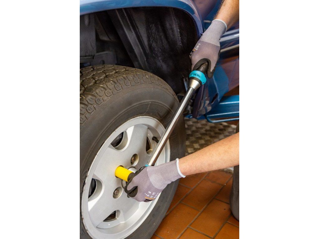 Koncipováno pro drsné dílenské nasazení. Rukojeť s ochranou proti odvalení pro snadnější přenos síly díky většímu záběru. Nastavovací pomůcka s aretačními body pro optimalizované vedení obsluhy zaručuje bezpečné a rychlé nastavení požadované hodnoty utahovacího momentu otočením rukojeti.