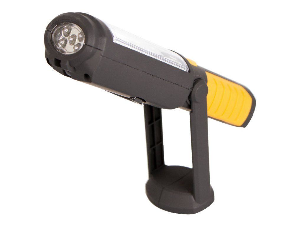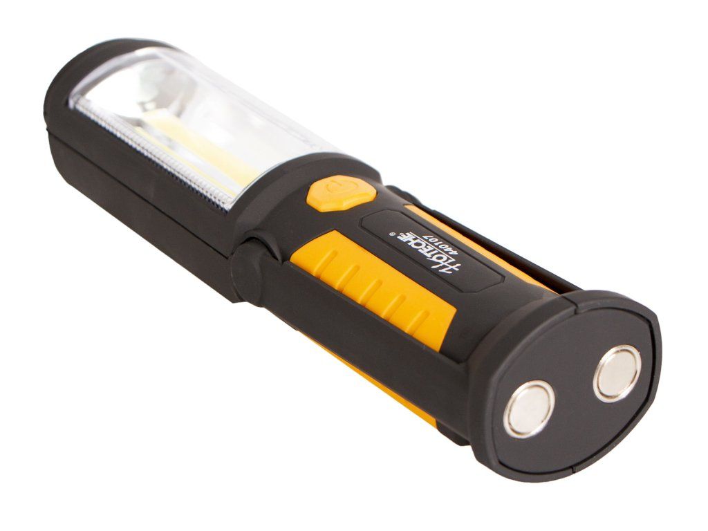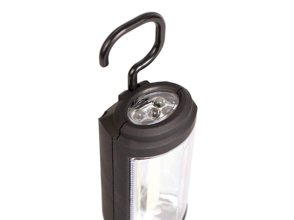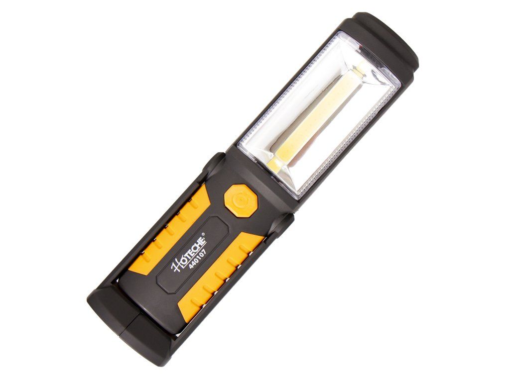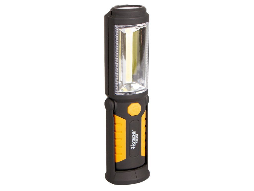 Odolná montážní LED svítilna od značky Hoteche s výkonem hlavního světla 3 W a světla v hlavě 0,5 W. Lampa najde využití v různých dílnách, garážích nebo například na "čundr" v přírodě.