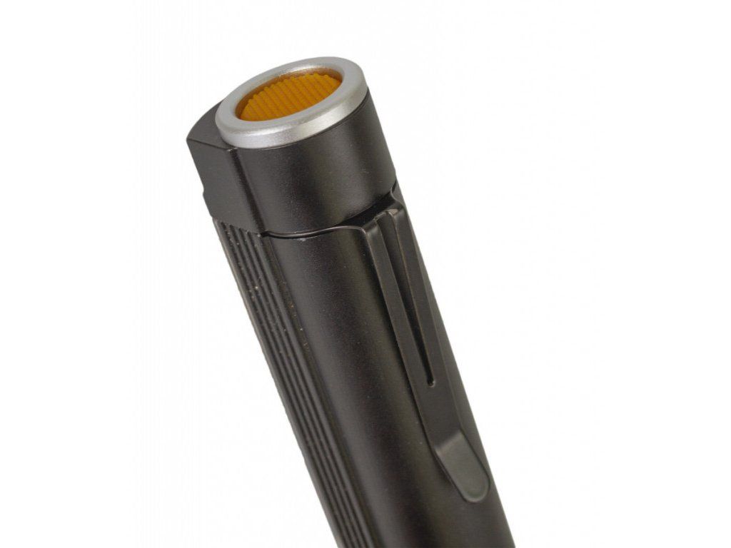 Na jednom konci baterky je oranžové tlačítko, kterým lze svítilnu zapnout. Při jemném promáčknutí můžete měnit funkce svítilny.