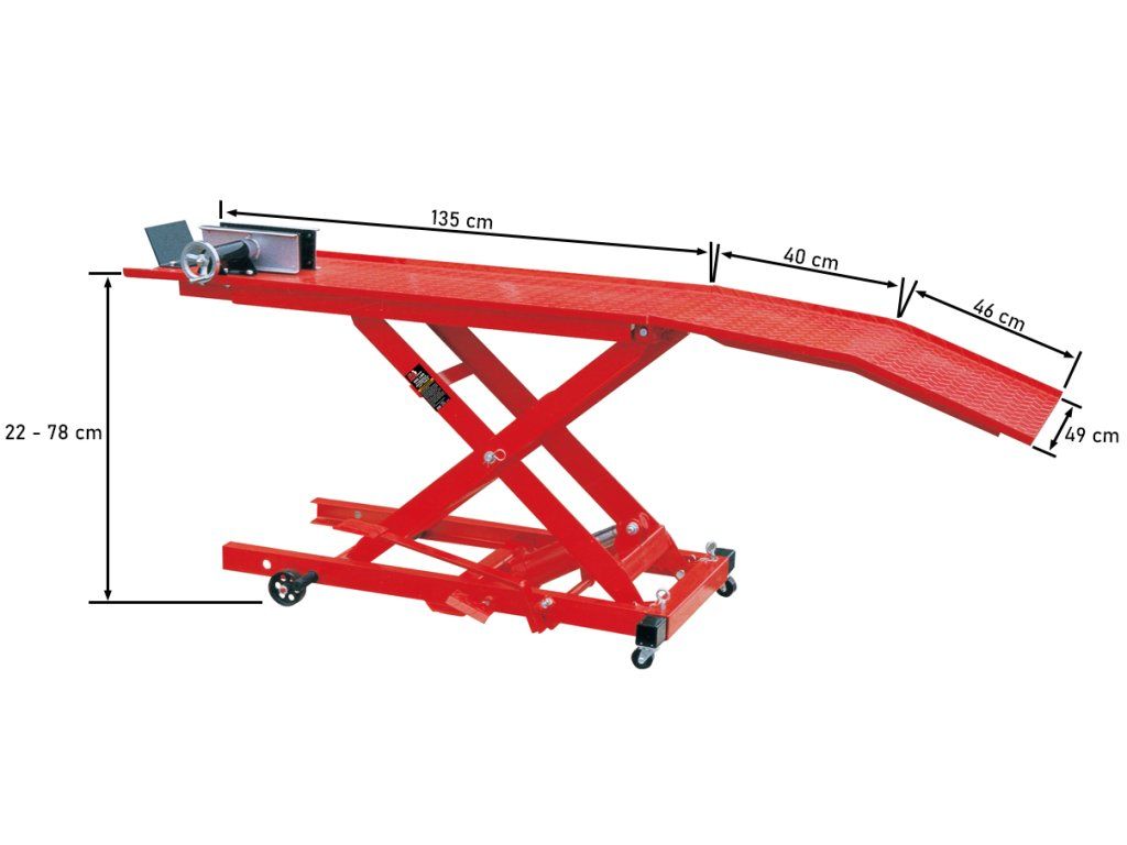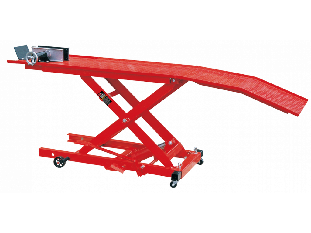 Pro PROFI servis motocyklů je neocenitelným pomocníkem hydraulický zvedák na motocykl, díky které se lépe a pohodlněji dostanete do těžko přístupných míst zdvihnutím motorky. Nosnost rampy činí 360 kg.