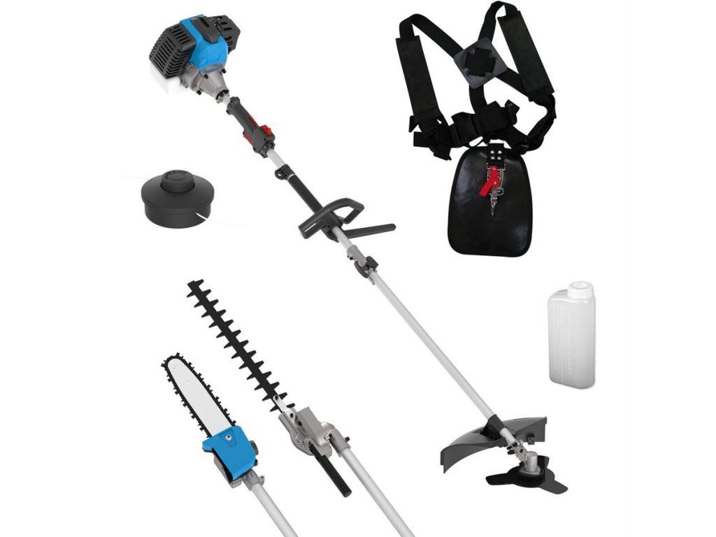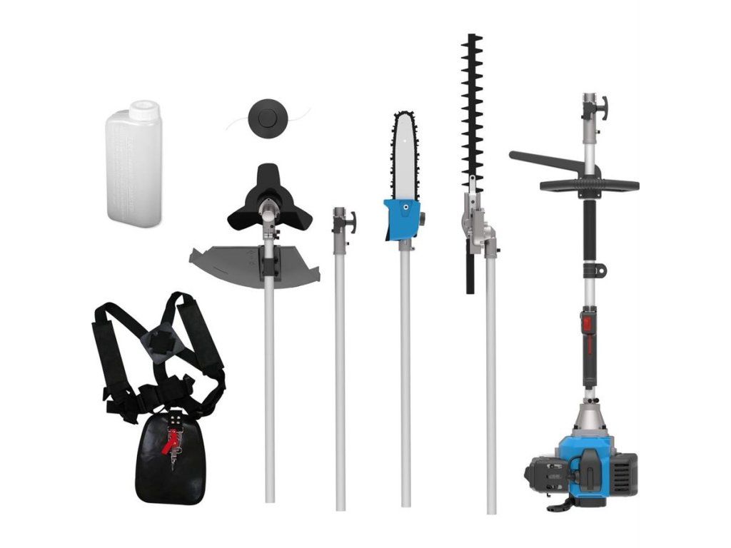 - 4v1: křovinořez, strunová hlava, plotostřih, vyvětvovací pila
