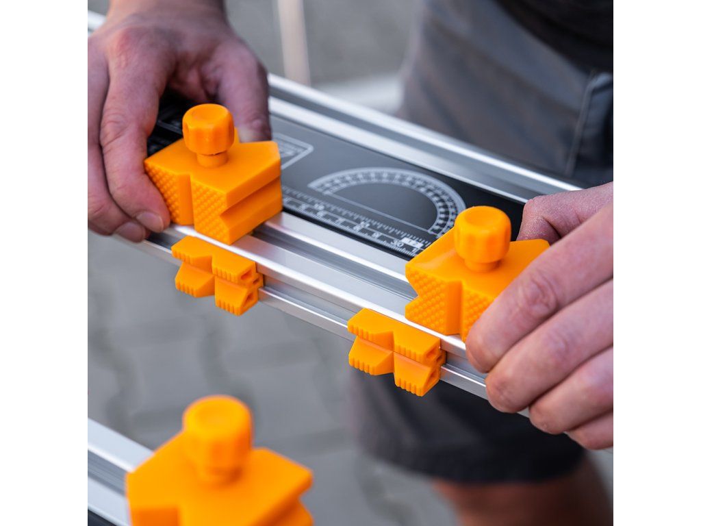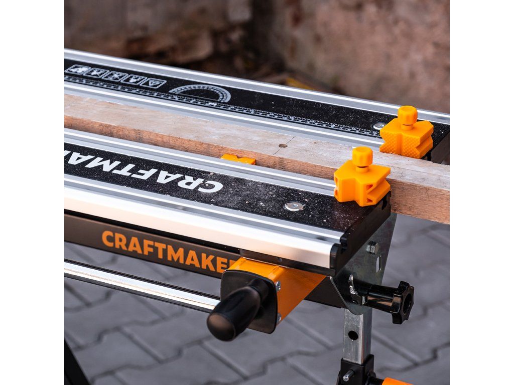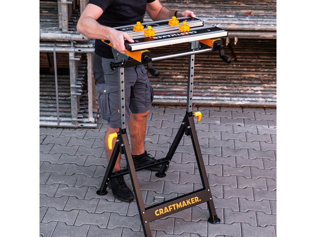 Spolehlivý stojan s funkcí svěráku a pracovního stolu od značky CRAFTMAKER®. Pomocí ručních klik pevně sevřete materiál v plastových zarážkách. Výklopná pracovní deska obsahuje integrovaný úhloměr 180° a pravítko o délce 56 cm nebo 22 palců. Nástavec Workbench Tilt & Rise je nepostradatelný rozšiřující doplněk pro vaši multifunkční pracovní kozu CRAFTMAKER Multihorse 4v1. Díky sklopné konstrukci ho snadno uskladníte, aniž by vám zabíral mnoho místa.