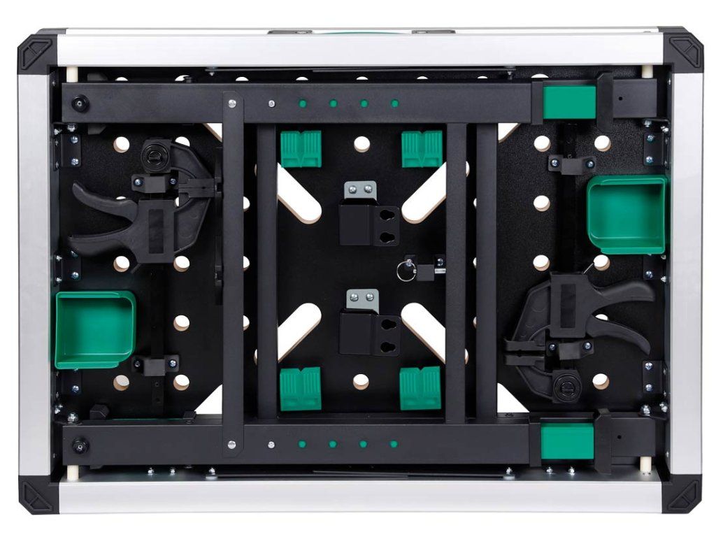 - Pracovní MDF deska s rastrem otvorů pro upínací systémy a příslušenství