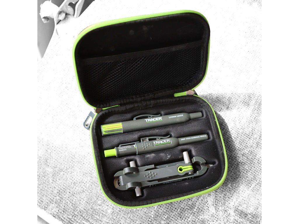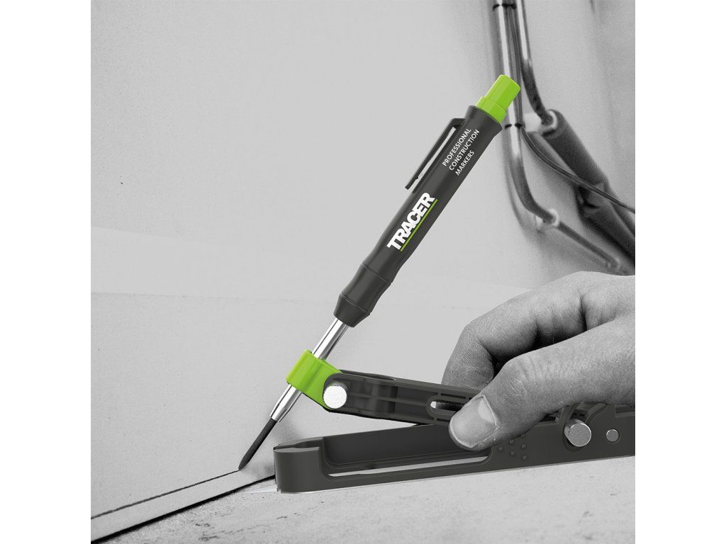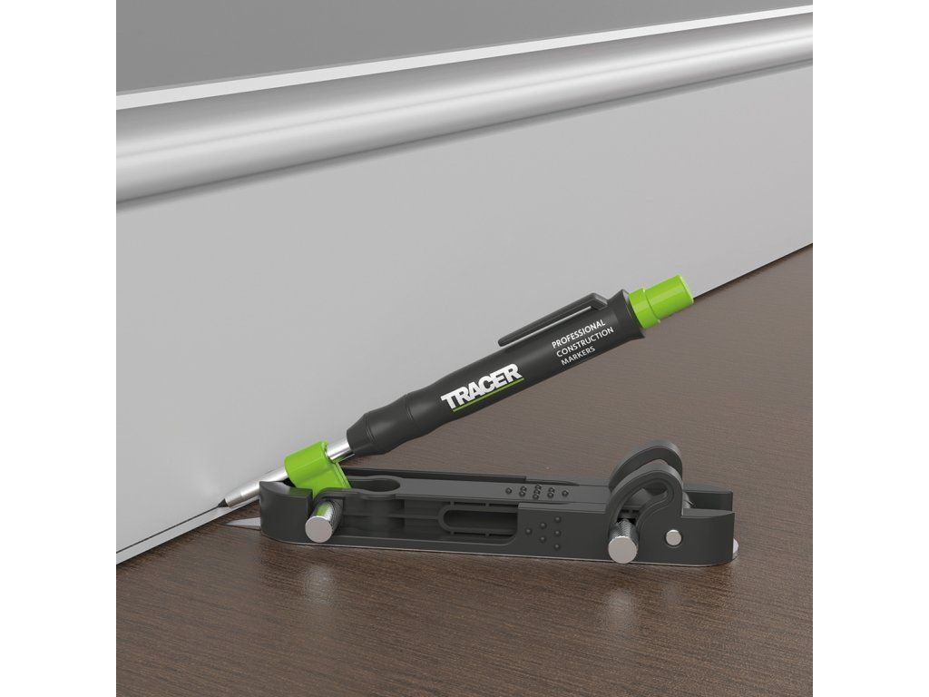 Multifunkční rýsovací pomůcka od britské značky Tracer, která vám umožní přenos značení či hran. Ideální na rýsování na všechny druhy povrchů. Pomůcka má multifunkční uchycení, které vám umožní upevnit nejen tužku Tracer ADP2, ale i jiné. Součástí balení je rýsovací pomůcka, truhlářská tužka a náhradní tuhy. Vyrobeno z kovu a robustního plastu.