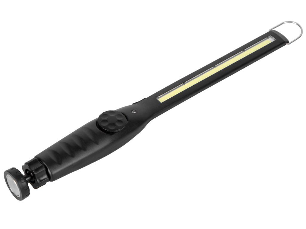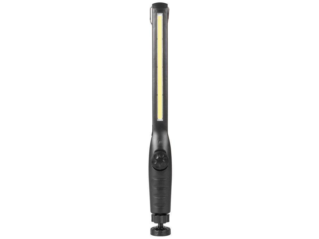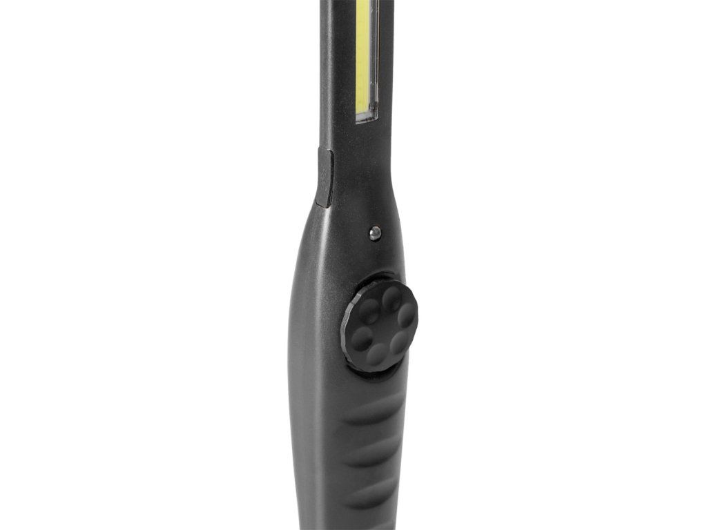 Dobíjecí pracovní svítilna s výkonným 5W COB LED čipem poskytuje světelný tok 200 lumenů a nabízí plynulou regulaci jasu pomocí otočného spínače.