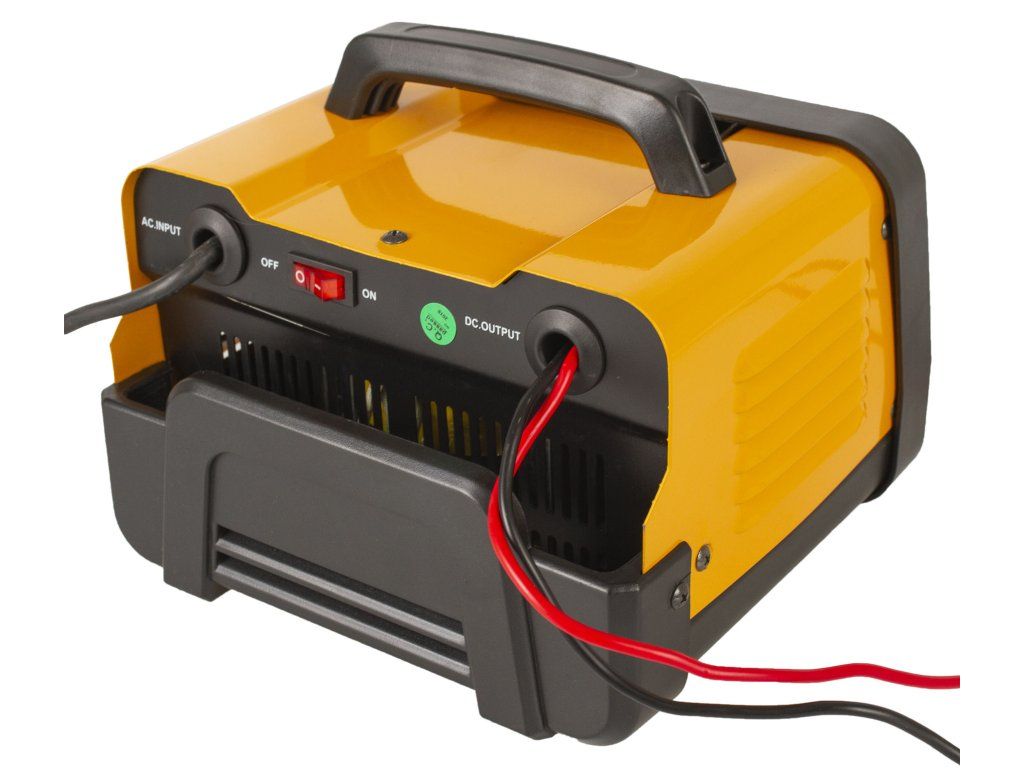 Nabíječka je na čelní straně osazena ampérmetrem ukazujícím aktuální nabíjecí proud, pojistkou, přepínačem napětí a tlačítkem pro zapnutí a vypnutí.