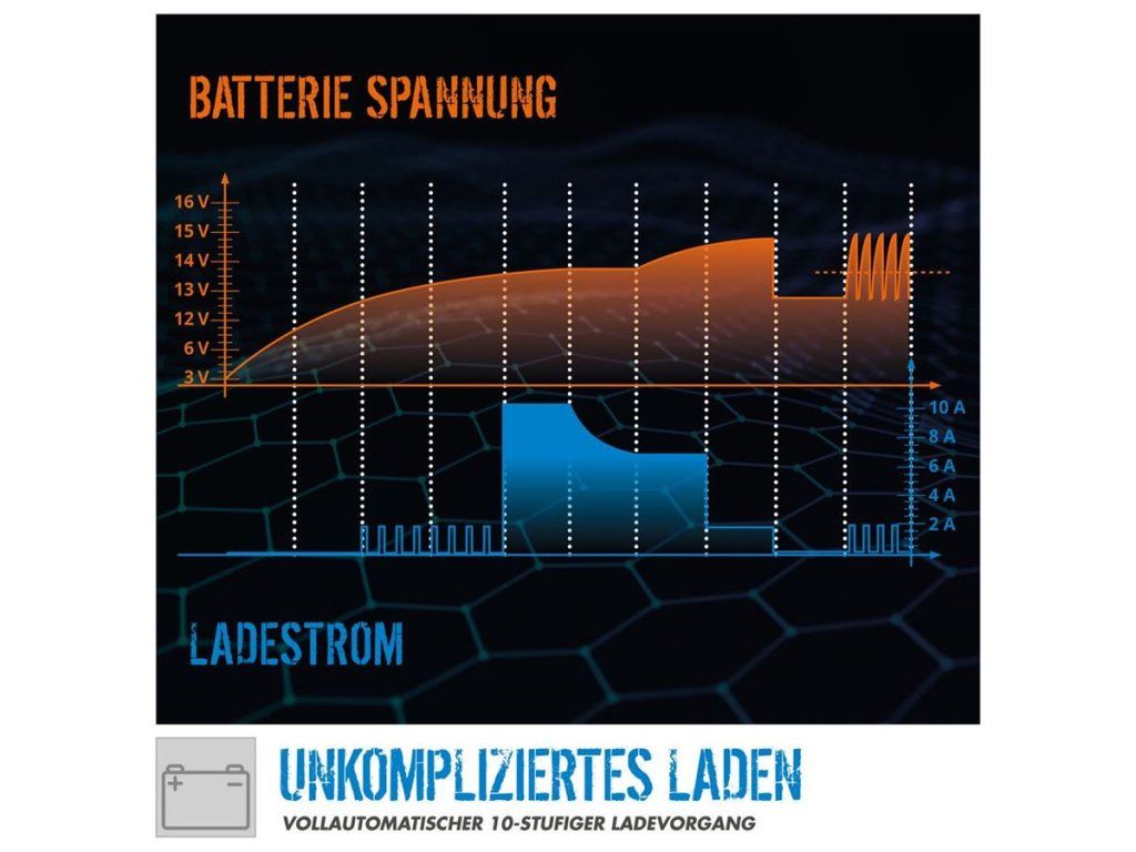 Vysoce efektivní a k akumulátorům šetrné nabíjení ve 9 + 1 fázích.