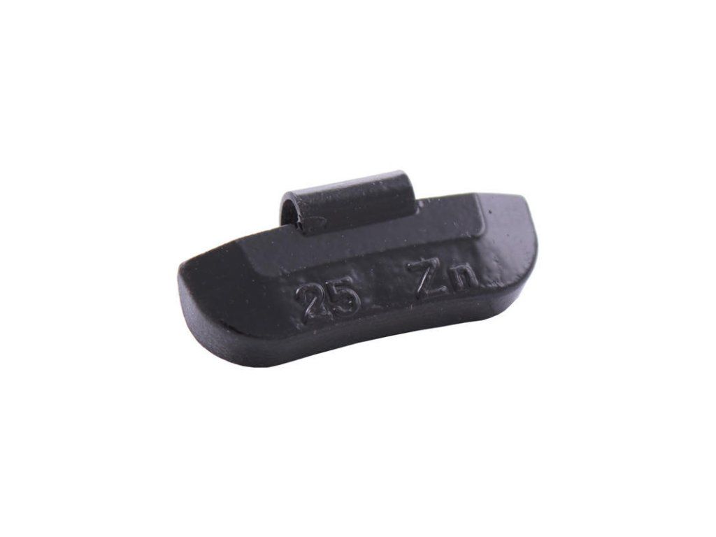 Standardní naklepávací vyvažovací zinkové závaží s černým lakem o hmotnosti 25 g pro všechny typy plechových disků. Závaží má přesnou gramáž, kvalitní lak a perko.