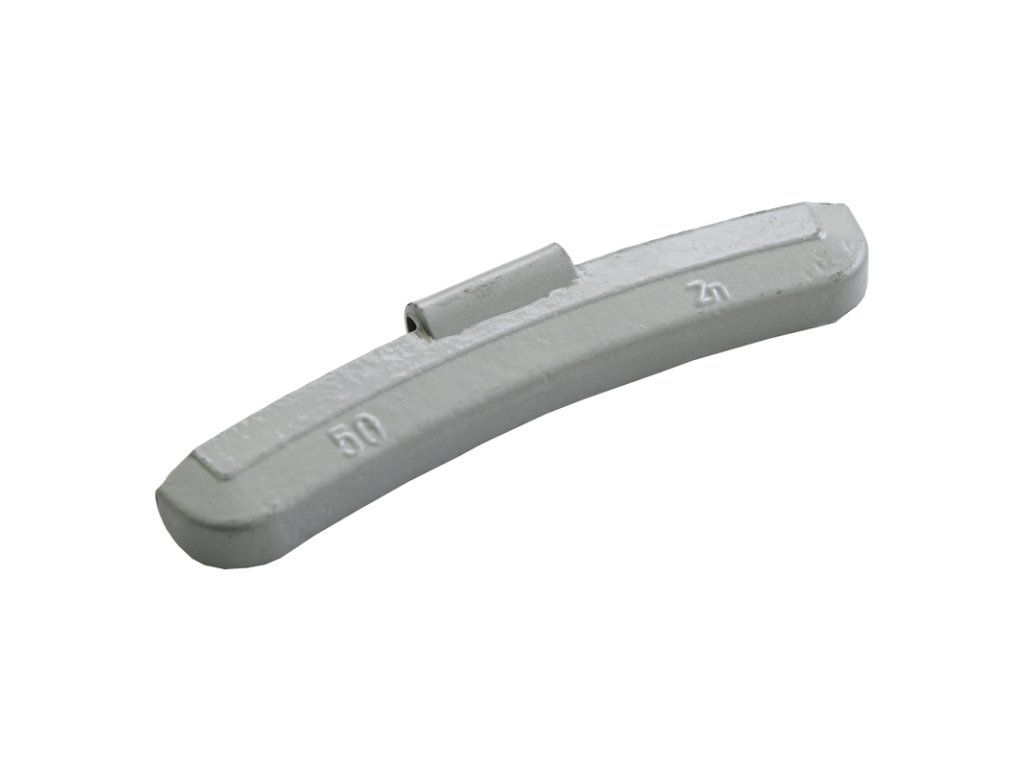 Standardní naklepávací vyvažovací zinkové závaží s šedým lakem o hmotnosti 50 g pro všechny typy plechových disků. Závaží má přesnou gramáž, kvalitní lak a perko.