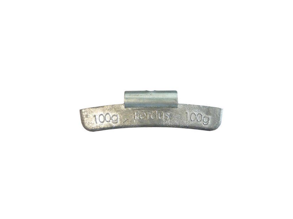 Naklepávací vyvažovací olověné závaží o hmotnosti 100 g pro ocelové disky lehkých nákladních vozů (AVIA apod.).