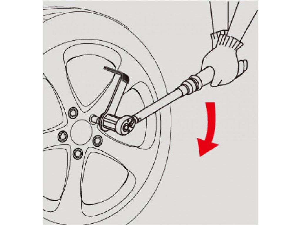 Posilovač momentu je nutné zaaretovat za pomoci patky ve tvaru "L", která je na konci pogumována, aby nedošlo k poškození povrchu (např. ALU disků apod.).