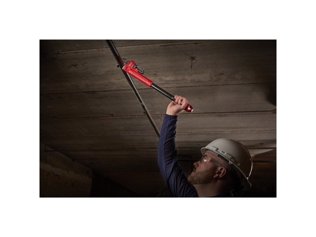 - Otevřený skus čelistí pro bezpečné uchopení potrubí a trubek.