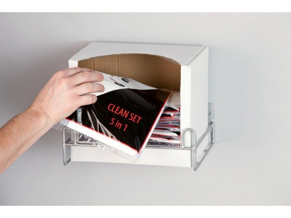 - Držák balení clean setů (krabice) na zeď
