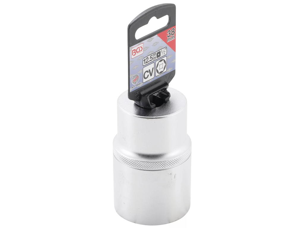 Prodloužená šestihranná hlavice s 1/2" čtyřhranem určená pro práci se šrouby a maticemi velikosti 38 mm v hůře přístupných místech.