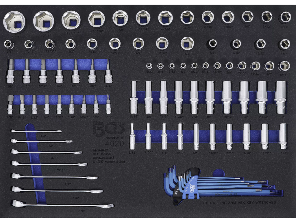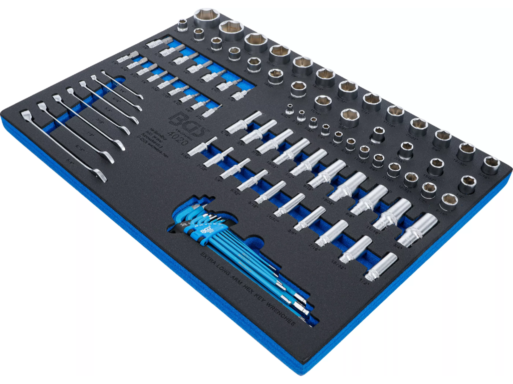 Nástrčné a očkoploché klíče v pěnové výplni, palcové vel., 90 ks - B4020