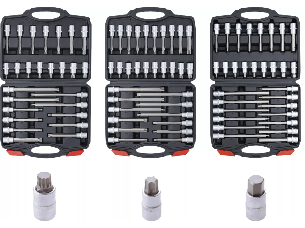 Všechny hlavice jsou uloženy ve 3 plastových kufřících, pro snadné a přehledné skladování a přenášení.
