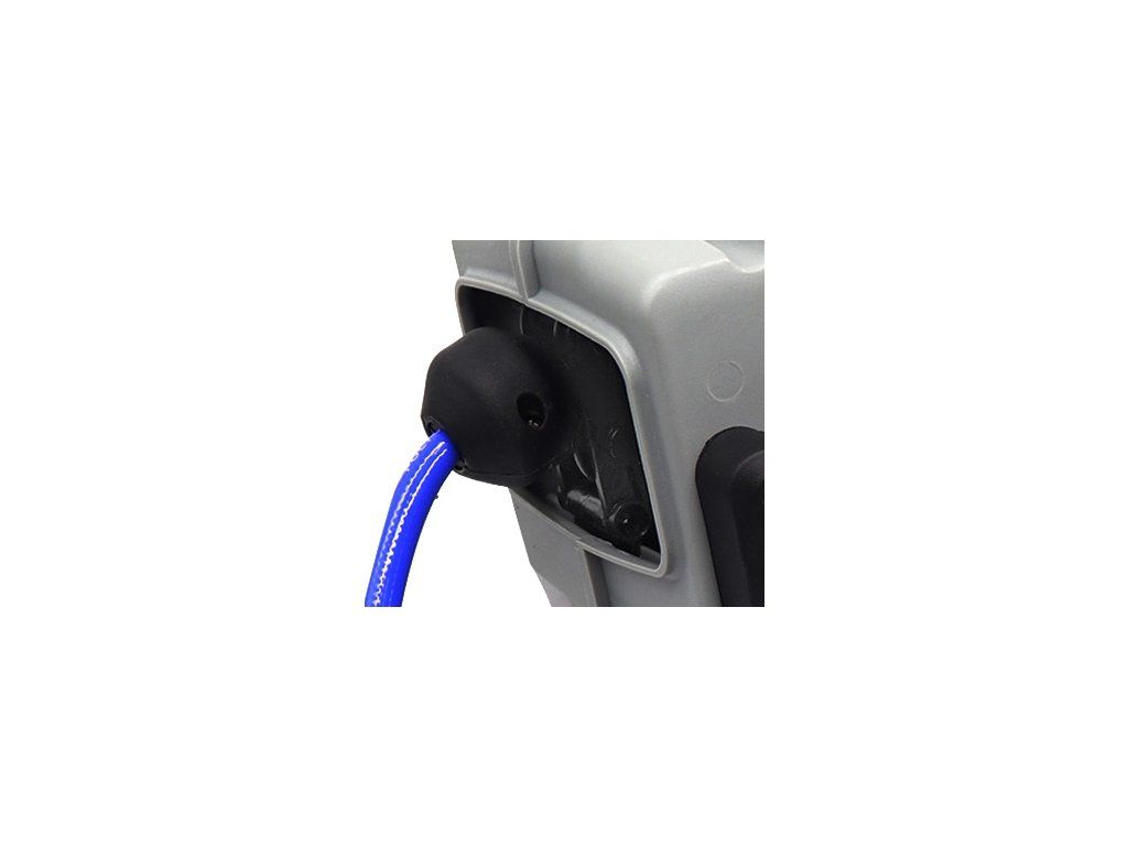 Navíjecí buben s polyuretanovou hadicí v délce 10 m s rychlospojkou a vsuvkou DN 7,4 a s integrovanou brzdou regulující rychlost navíjení hadice zpět do bubnu. Pro montáž na stěnu nebo strop.