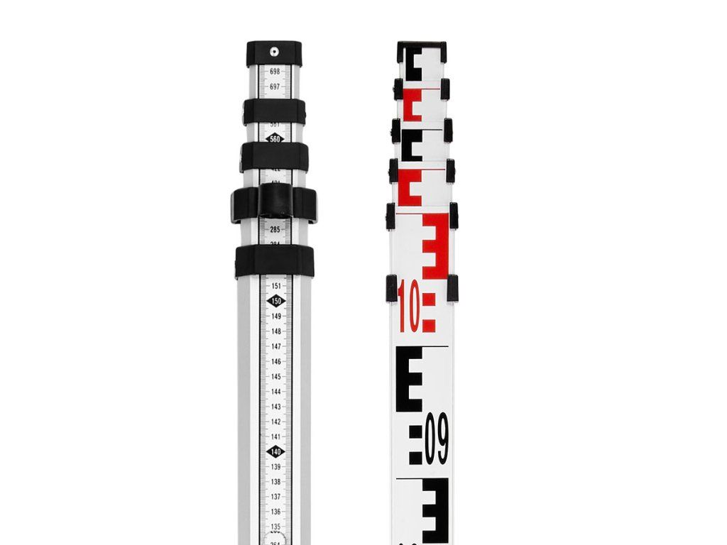 - pro různé úkoly - Invarové hůlky pro přesné vyrovnání, dřevěné hůlky pro přesné vyrovnání kontrolních bodů, hliníkové a sklolaminátové hůlky s popisem typu "E" na jedné straně a milimetrovou stupnicí na druhé pro rychlé vyrovnání na stavbách, speciální hůlky pro spolupráce s laserovými vodováhy, délky od 2,4 m do 5 m – na výběr