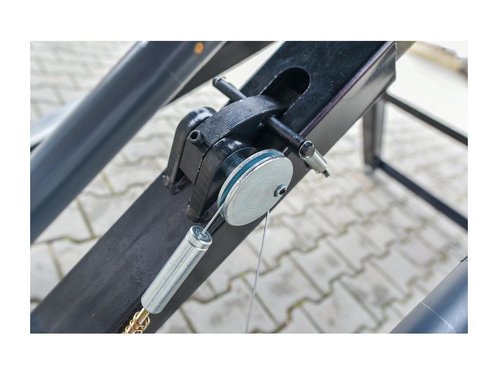 - Hydraulicky poháněné válce s mechanickým zámkem znemožňují samovolné poklesnutí plošin. Bezpečnostní západka se uvolňuje stisknutím rukojeti.