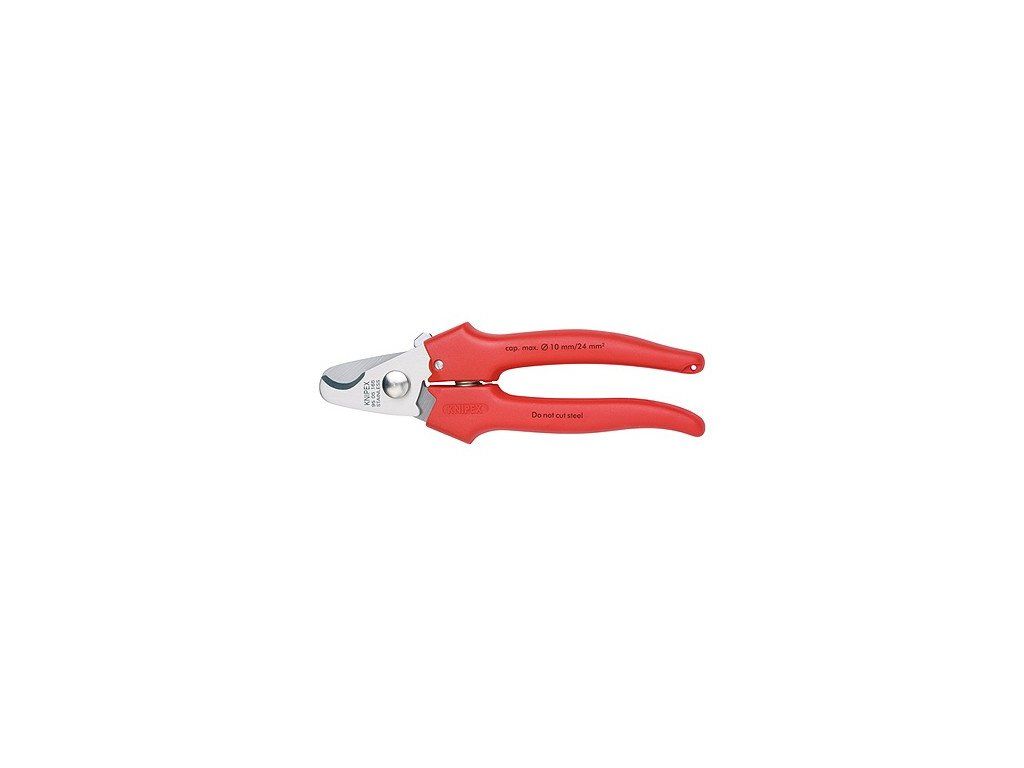 95 05 165 Kabelové nůžky Není vhodné pro ocelový drát a měděné vodiče tažené natvrdo Kalené břity s precizním výbrusem Žádné mačkání, nepatrná deformace kabelu S ochranou proti sevření Seřizovatelný šroubovaný kloub Těleso nůžek: chirurgická ocel, nerezavějící, volně tvrzená Rukojeti: plast, rázuvzdorný Model: Univerzálně použitelné ke stříhání kabelů O 10 mm / 24 mm2 S otevírací pružinou a blokovací západkou Břity z nerezové oceli Kaleno v oleji a popuštěno Hlava: Leštěné Rukojeti: S plastovým nástřikem AWG: 3 Délka: 165 mm Hmotnost: 111 g Podrobnější informace ke zboží naleznete v katalogu KNIPEX v sekci "Katalogy"Doplňkové parametry