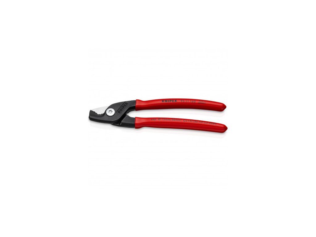 KNIPEX StepCut kabelové nůžky Snadnější střihání kabelů: inovativní krokový řez odděluje dráty po jednom a šetří energii Malé, lehké, silné: pohodlné stříhání bez poškození a při velikosti pouze 160 mm Výrazně menší úsilí: krokový řez odděluje jednotlivé dráty, stříhání je až o 40 % snazší než se standardními, stejně dlouhými nůžkami na kabel Ergonomická rukojeť: optimální cit při stříhání i u kabelů s větším průměrem >>Stříhají vícežilové měděné a hliníkové kabely s průměrem až 15 mm (50 mm²) >>Stříhají celokovové měděné a hliníkové kabely s průřezem až 5 x 4 mm² >>Řez bez poškození >>Šroubovaný kloub: přesný, snadný, odolný >>Pro zajištění bezpečnosti mají kryt, který chrání prsty před skřípnutím >>Nevhodné pro ocelový drát a natvrdo tažené měděné vodiče >>Dlouhá životnost: speciální vysokojakostní nástrojová ocel, kovaná, kalená v oleji, ostří dodatečně indukčně tvrzené >>Břity doplňkově induktivně tvrzené, tvrdost břitů asi 56 HRCDoplňkové parametry