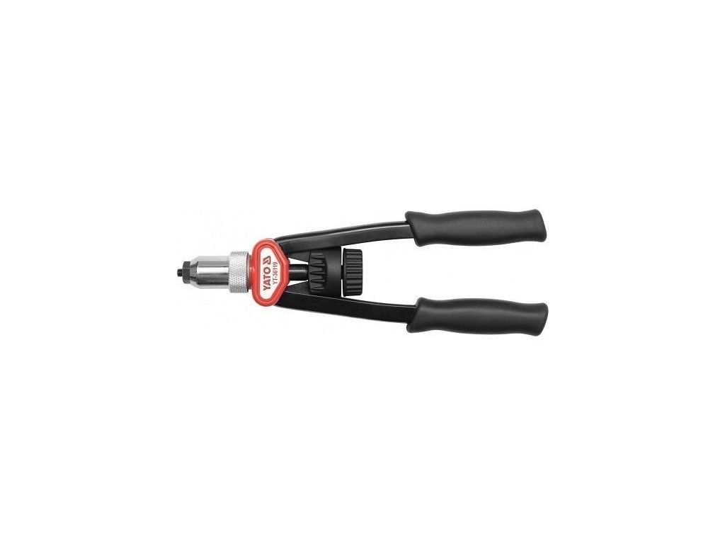 Rruční nýtovací pákové kleště Yato pro maticové nýty. Pákový mechanizmus významě snižuje námahu při práci.