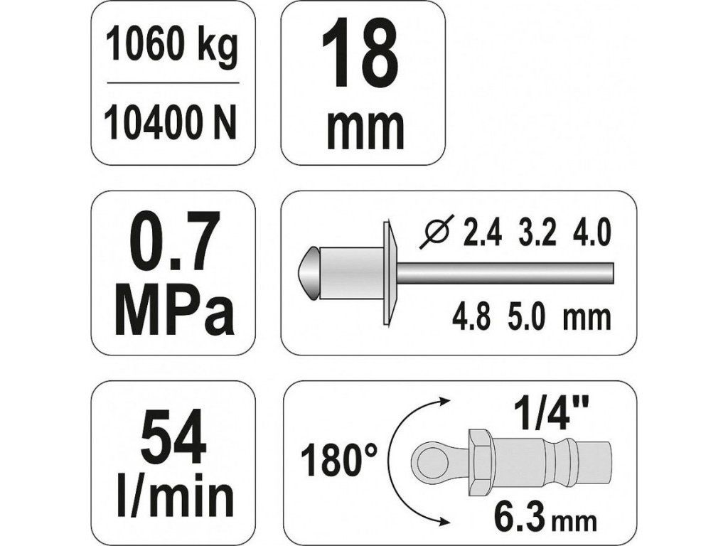 Nýtovačka pneumatická (2,4- 5mm) - YT-36171