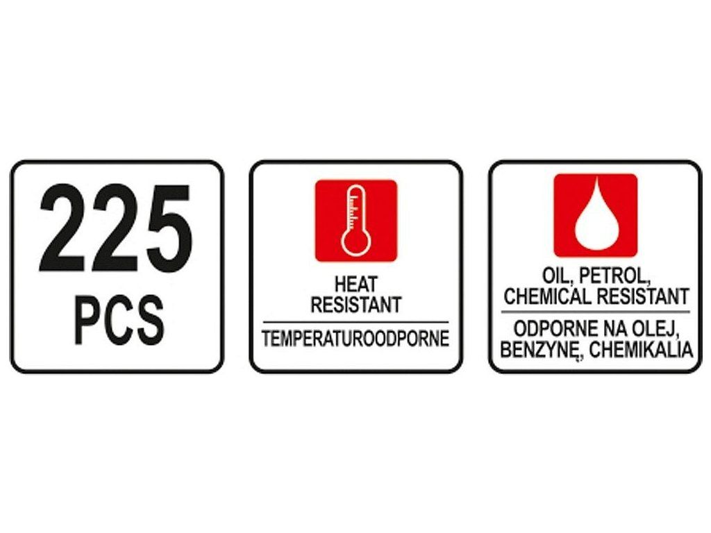 O kroužek gumová těsnící sada 225ks,3x1 - 22x2mm