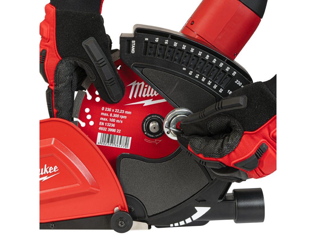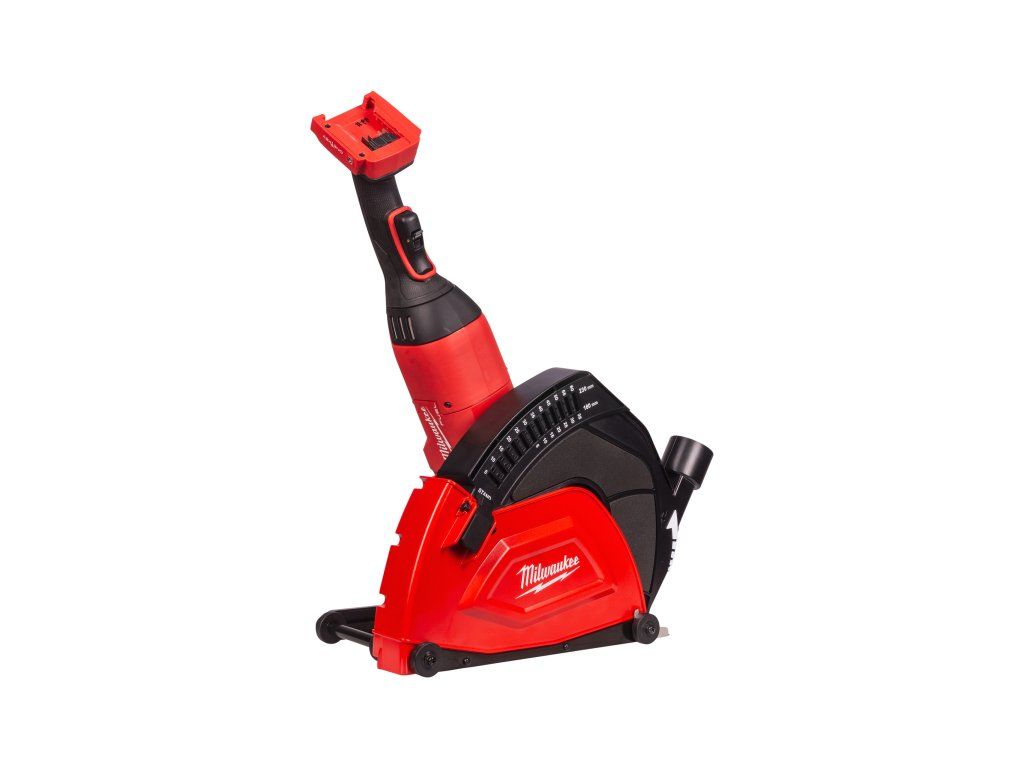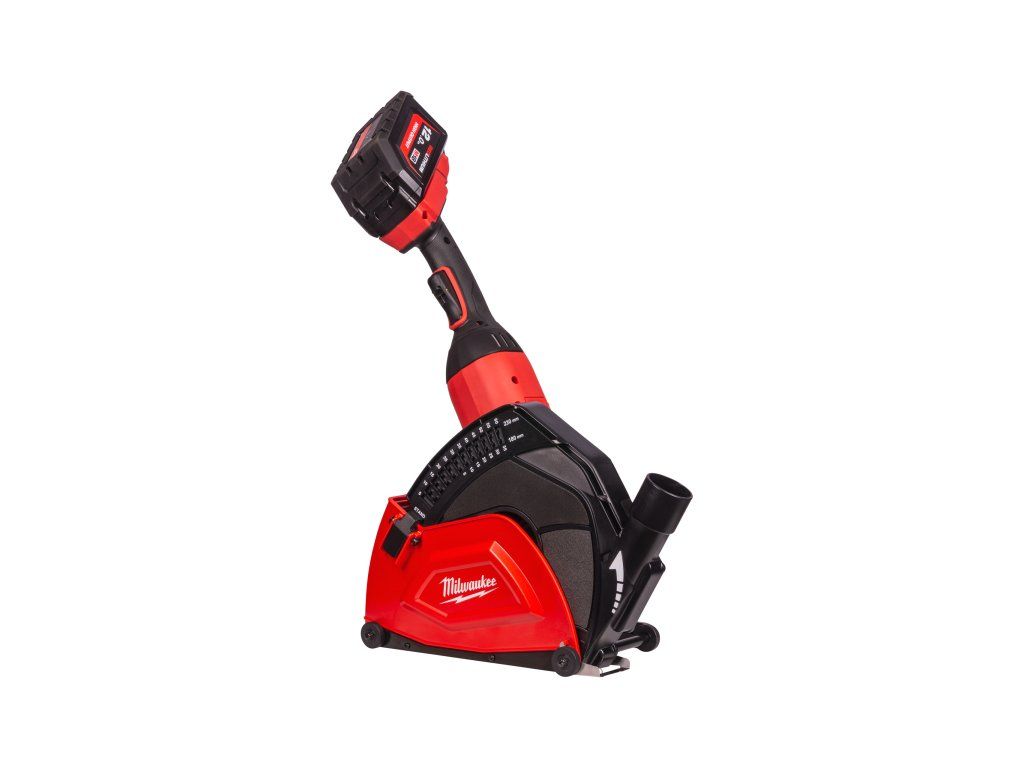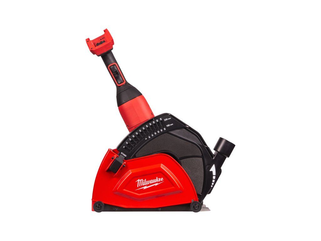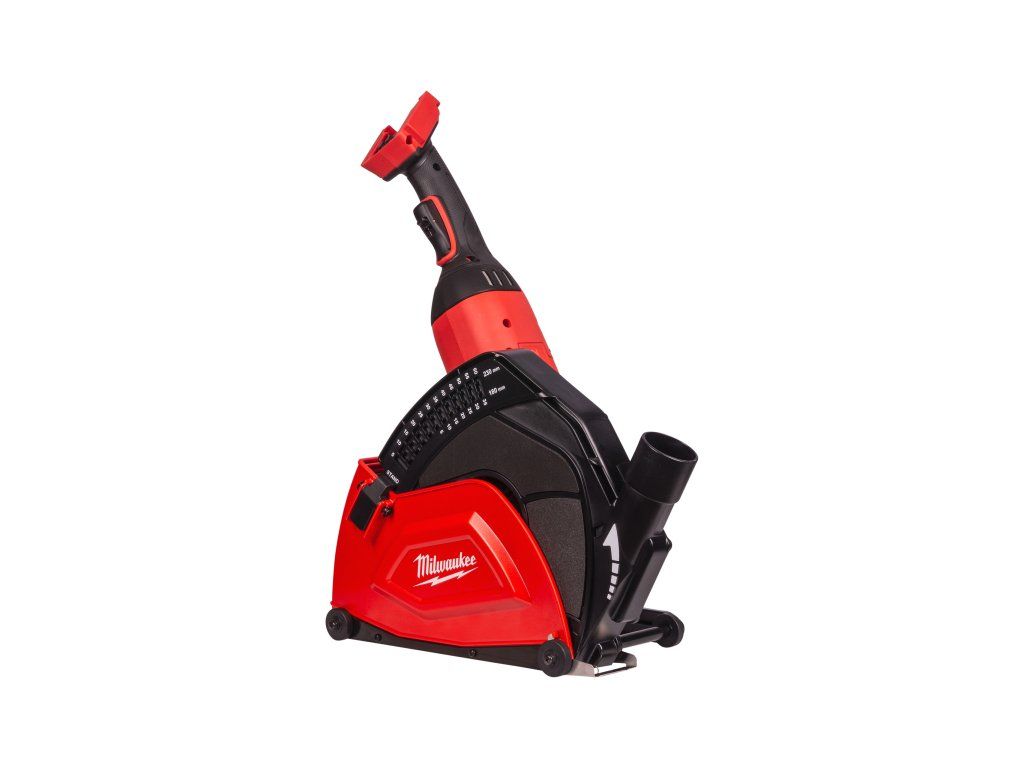 Ochrana proti prachu pro řezání - DEC 230 k Ø 180 - 230 mm AG 22, nastavení hloubky klíče od 5 - 60 mm. Řezací vodítko z masivní oceli, které zabraňuje kroucení během řezání, a indikátor ohebné čáry řezací linky pro řezy zanořením. Ochrana proti pra