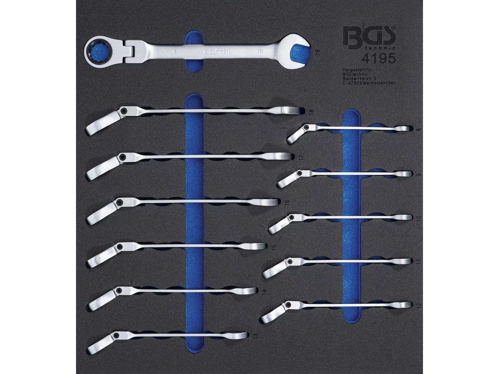Očkoploché ráčnové klíče s kloubem 8-19 mm, sada 12 ks - BGS