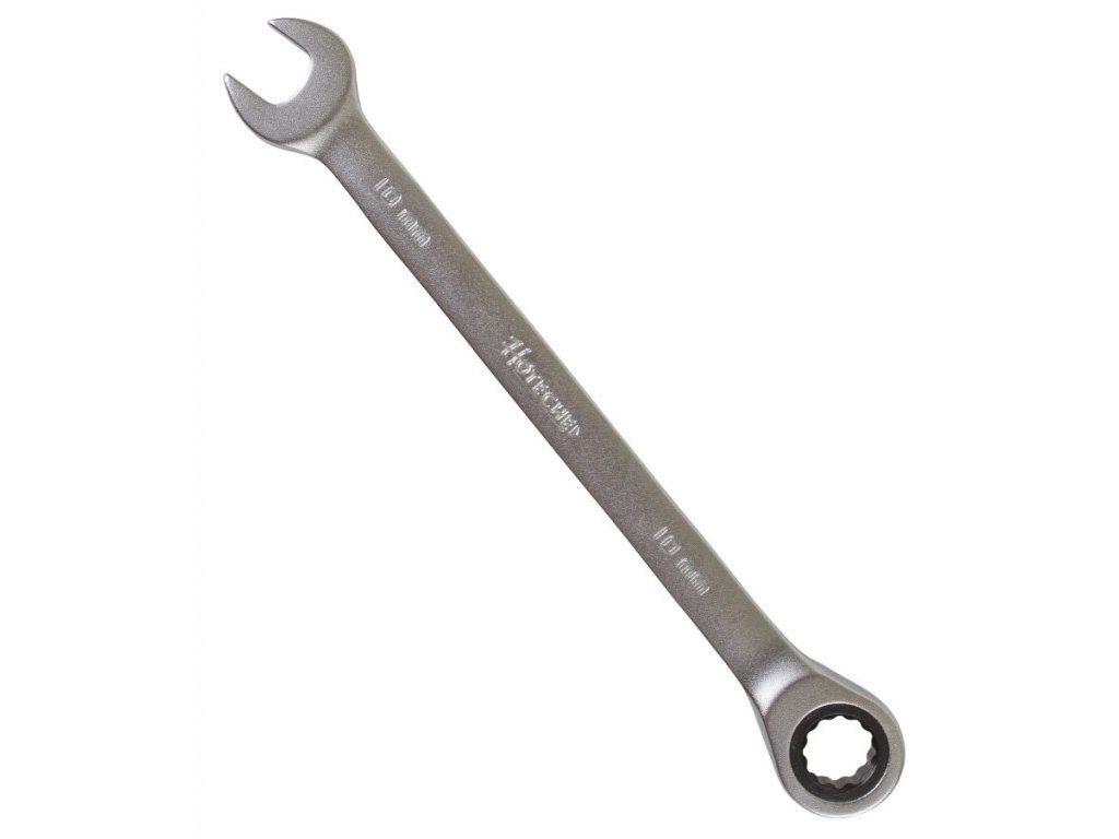Ráčnový očkoplochý klíč od značky Hoteche o rozměru 10 mm je na jedné straně klasický stranový klíč, na straně druhé očkový klíč s dvanáctihranným profilem vybaveným ráčnou s jemným dělením 72 zubů. Povrch klíče je pochromovaný.