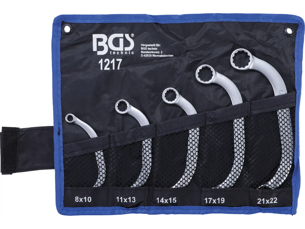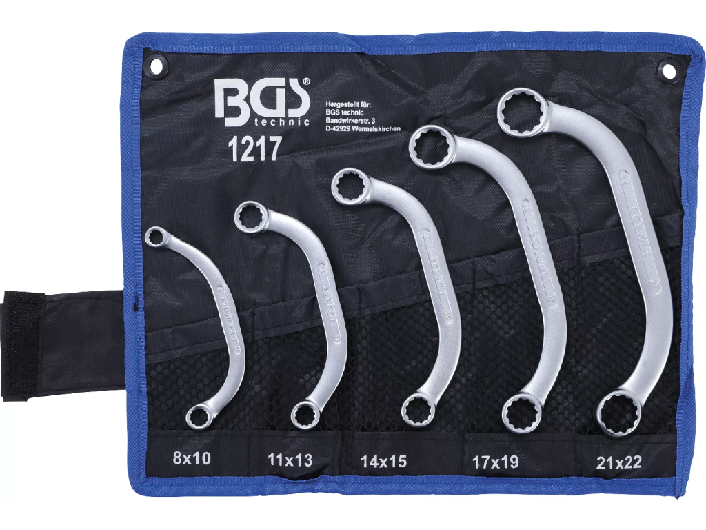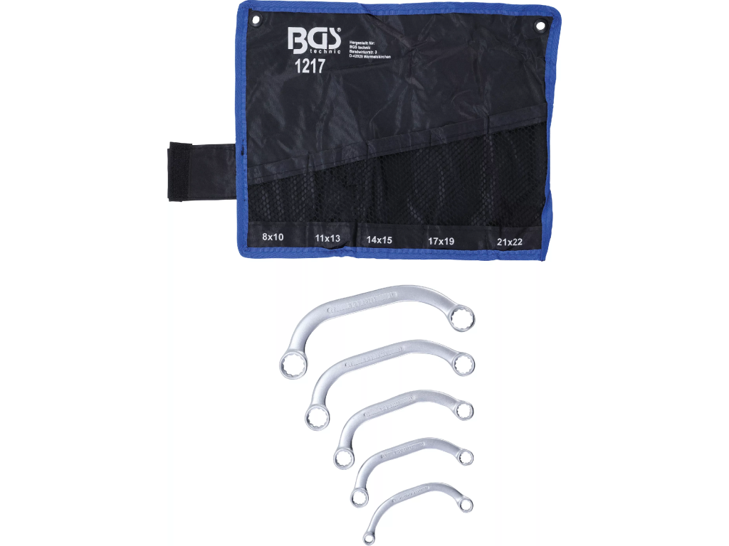 Kvalitní očkoploché klíče s "C" profilem v sadě 5 ks od německého výrobce, která je přehledně uložena ve srolovatelném pouzdře.