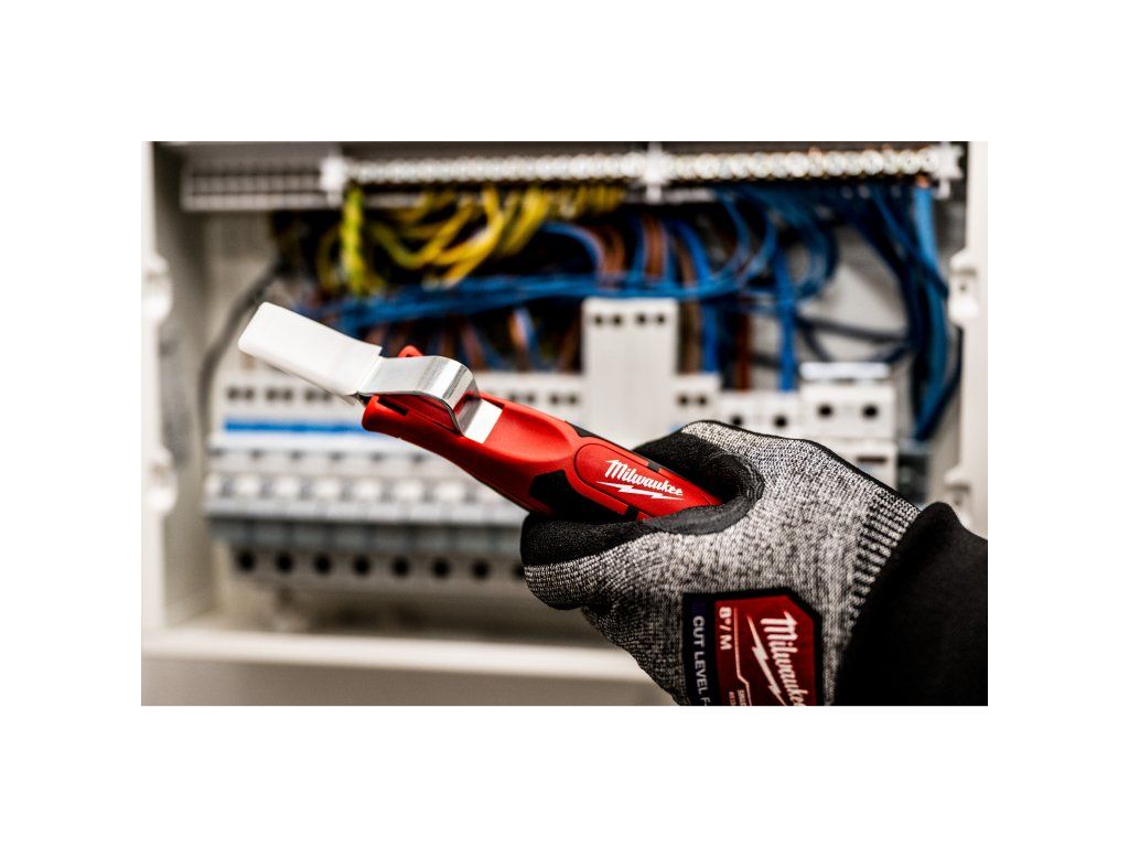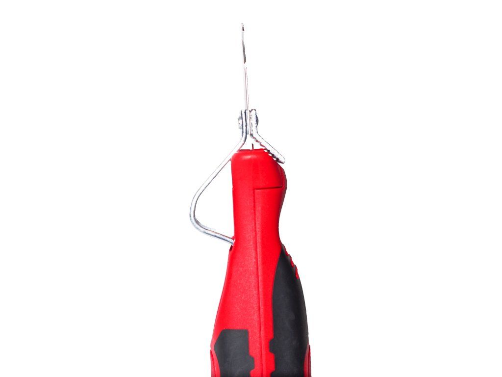 - Integrovaný háčkový nůž pro větší všestrannost. Bezpečnostní krytka na čepeli snižuje riziko poranění.