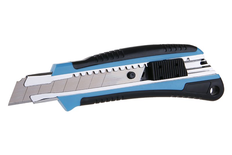 Odlamovací nůž FESTA 18mm, kvalitní materiály, ergonomický tvar s protiskluznou úpravou, kovová lišta, automatická posuvná aretace, do nože lze umístit až 2 náhradní břity, blistr.
