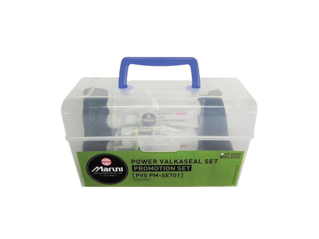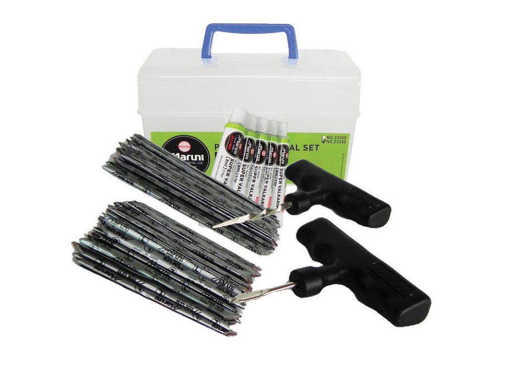 Opravná sada MARUNI PM-SET01 v praktickém boxu je vhodná pro opravu bezdušových pneumatik osobních a nákladních vozidel.