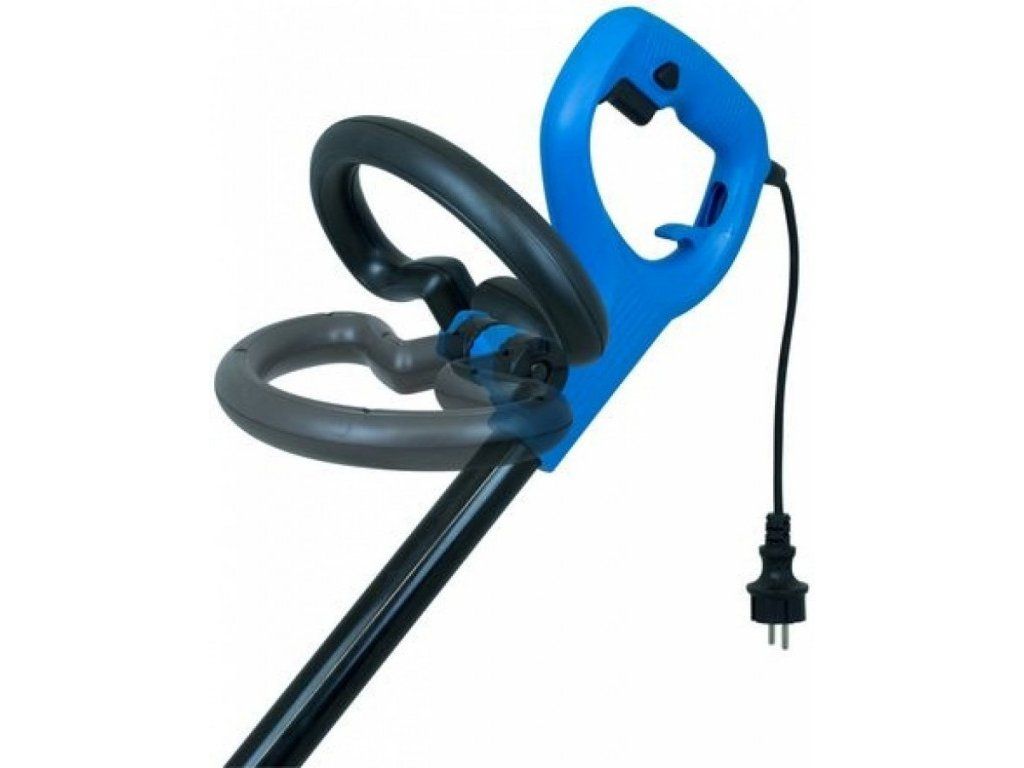 Konstrukce: řezný nůž (d x š: 190 x 80 mm, se dvěma břity; včetně ochranného vodítka), výškově nastavitelné pomocné madlo, ergonomicky tvarovaná tlačná rukojeť.