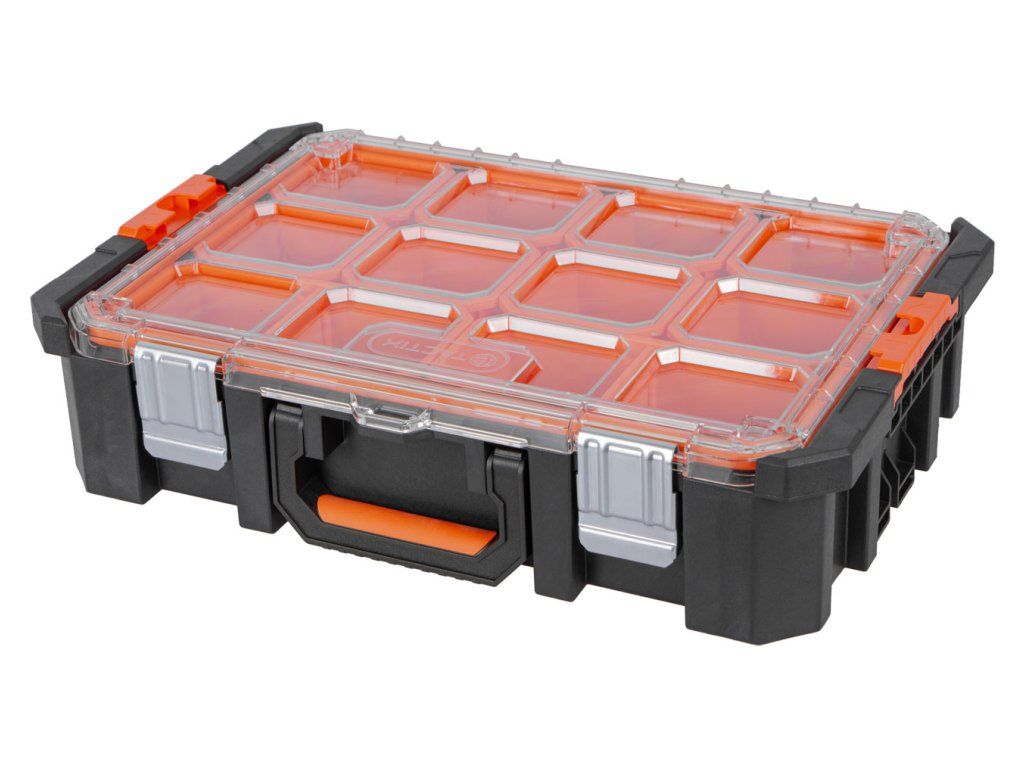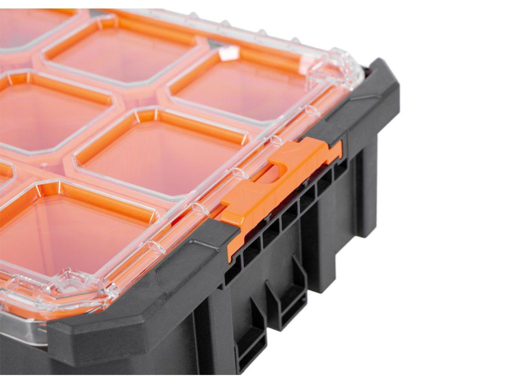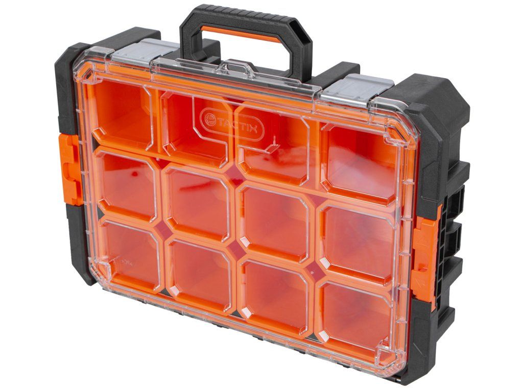 Organizér s 12 přihrádkami z řady Tactix boxů na nářadí je skvělý pro ukládání vašeho drobného spotřebního materiálu. Do vyjímatelných přihrádek snadno uložíte vaše matice, podložky šroubů a podobné předměty.