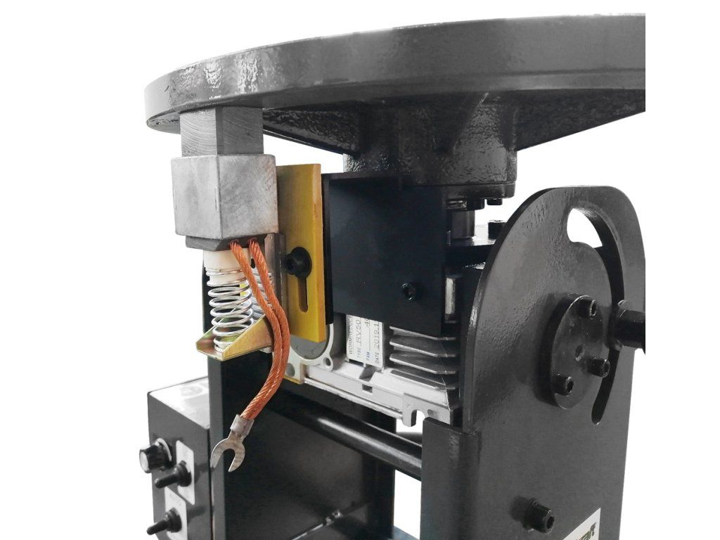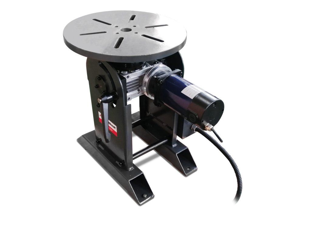 Otočný stůl s ručním nastavením sklonu pracovního stolu a plynulou regulací otáček talíře.- Plynulá regulace otáček talíře s pravým/levým chodem